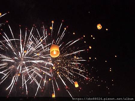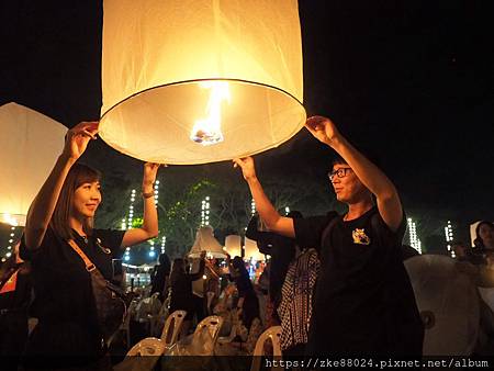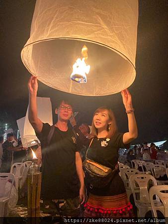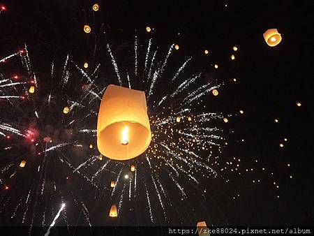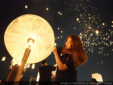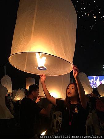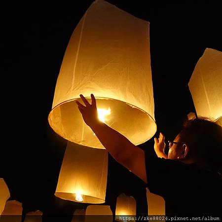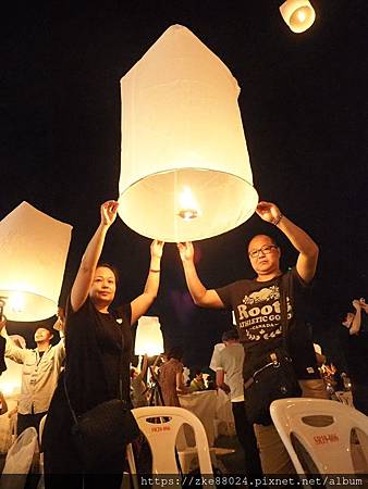 沒幾分鐘,司儀口令請大家可以點燃第一個天燈,但請大家緊緊的拉住(相信我,這跟當兵一樣,放炮的一樣不少,哈~),時間一到、司儀信號~放~這價值百萬的絕美夜景,就呈現在無數遊客眼前,美不勝收,感動不已!!!